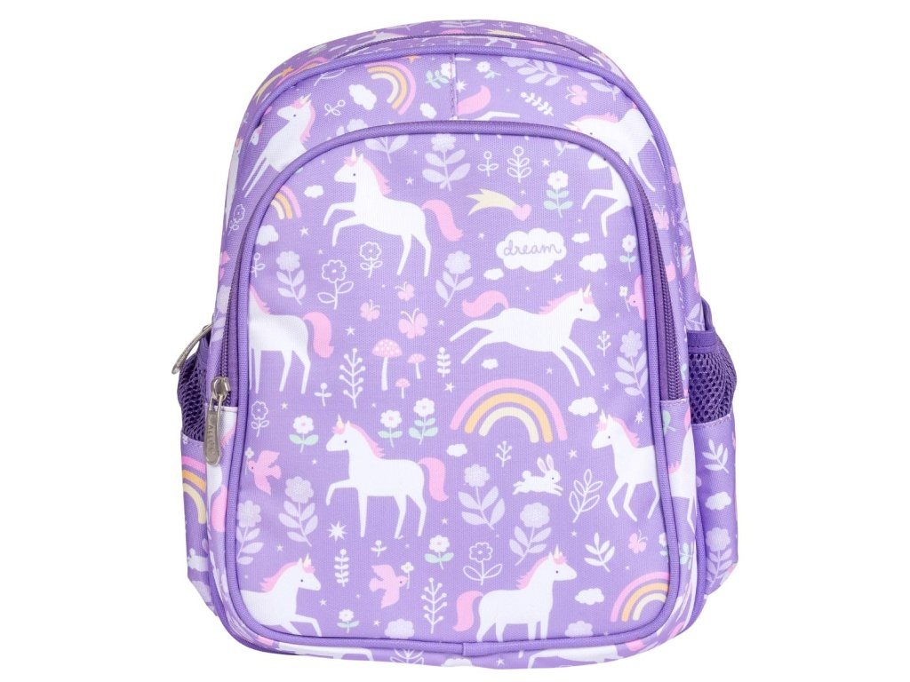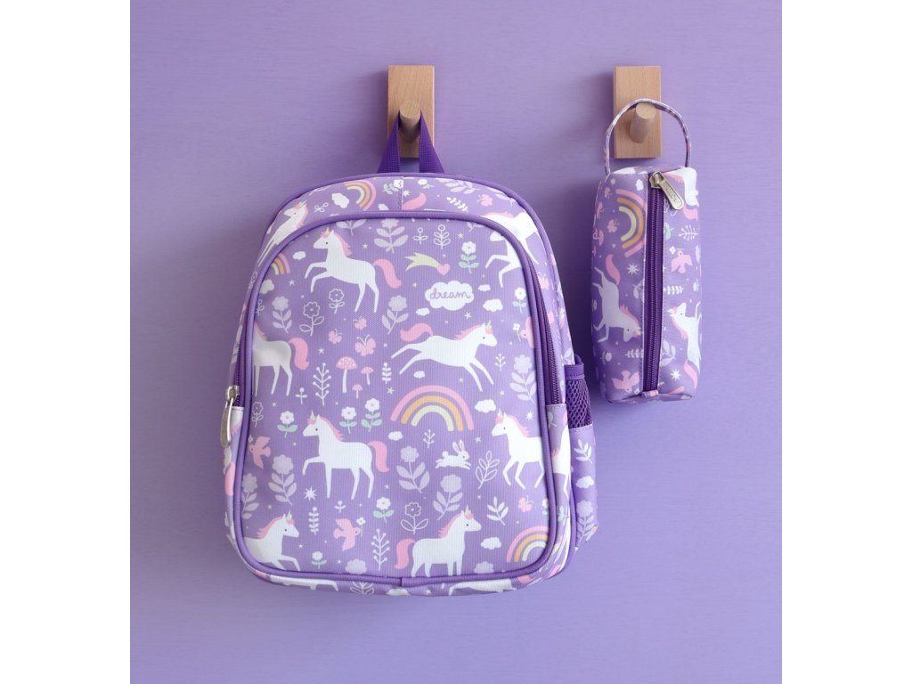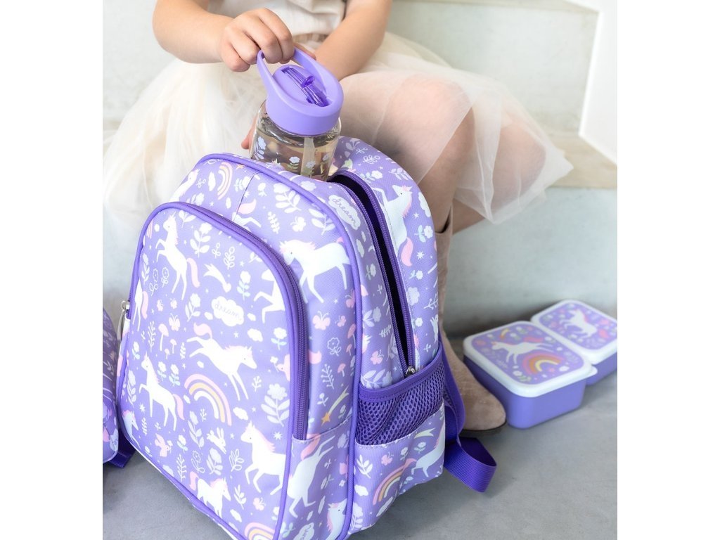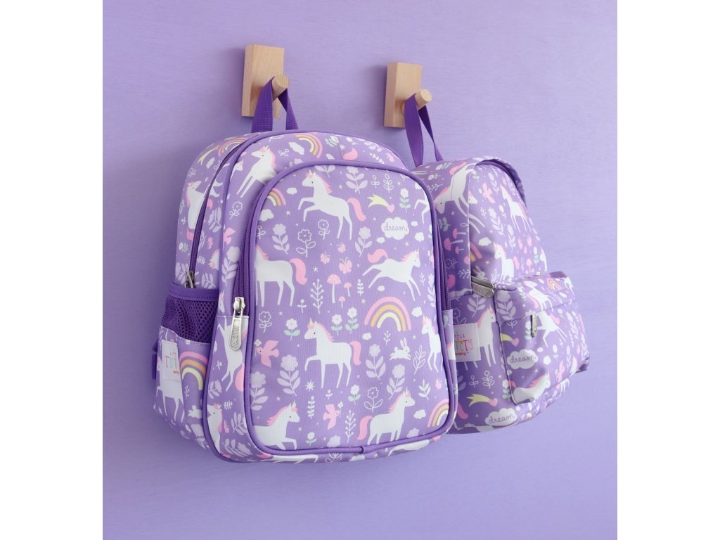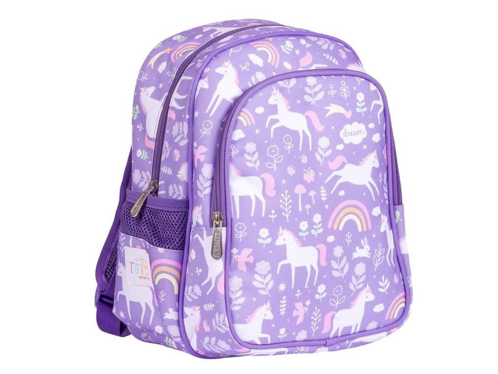 Vneste do každodenních dobrodružství trochu kouzla s dětským batůžkem do školky A Little Lovely Company – motiv Jednorožci a duha. Tento roztomilý batůžek je lehký, snadno omyvatelný a navržený tak, aby perfektně seděl na malých zádech.