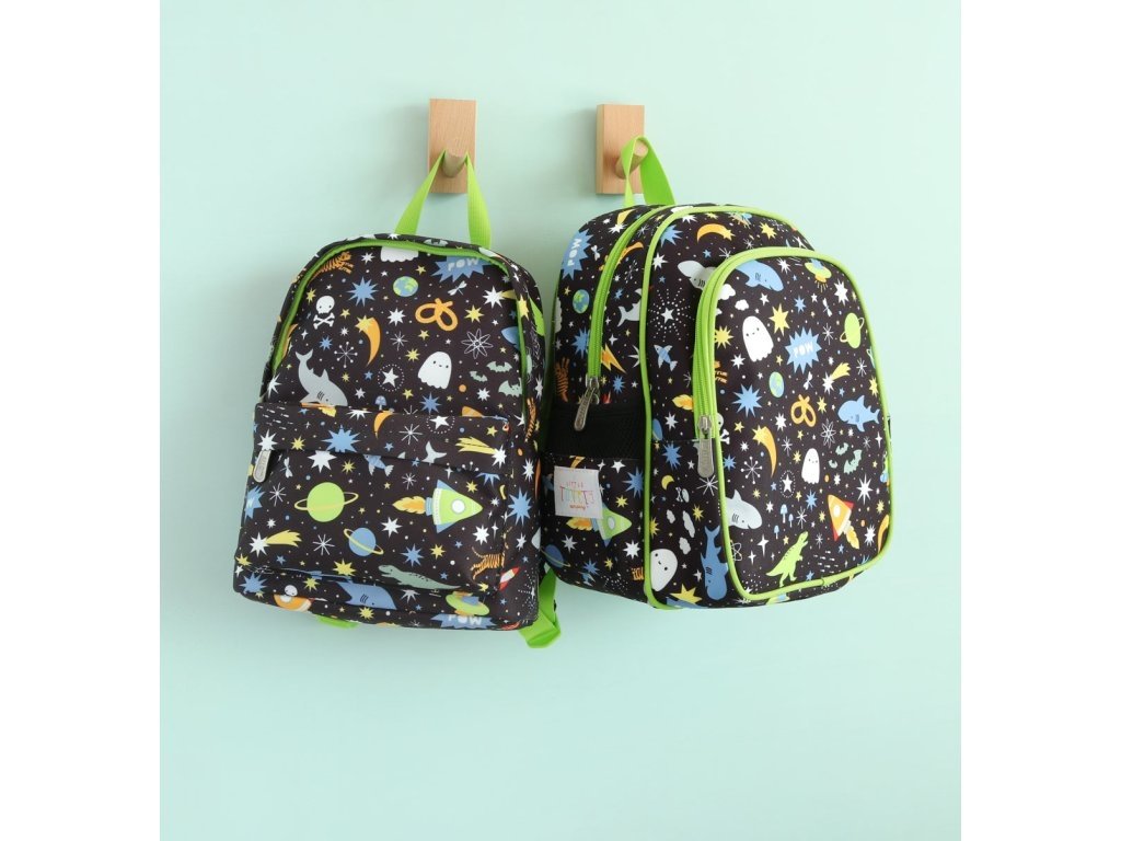 Vstupte do světa vesmírných dobrodružství s tímto dětským batůžkem Universe od A Little Lovely Company! S motivy planet, hvězd a raket rozzáří každý den v škole i na výletě. Batoh má hlavní prostornou kapsu vhodnou pro oblečení, hračky nebo školní potřeby + izolovaná přední kapsa, která udrží svačinu čerstvou.