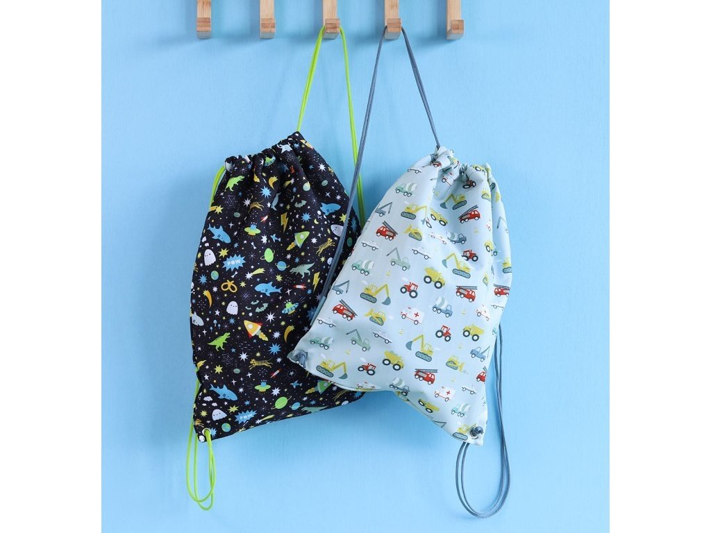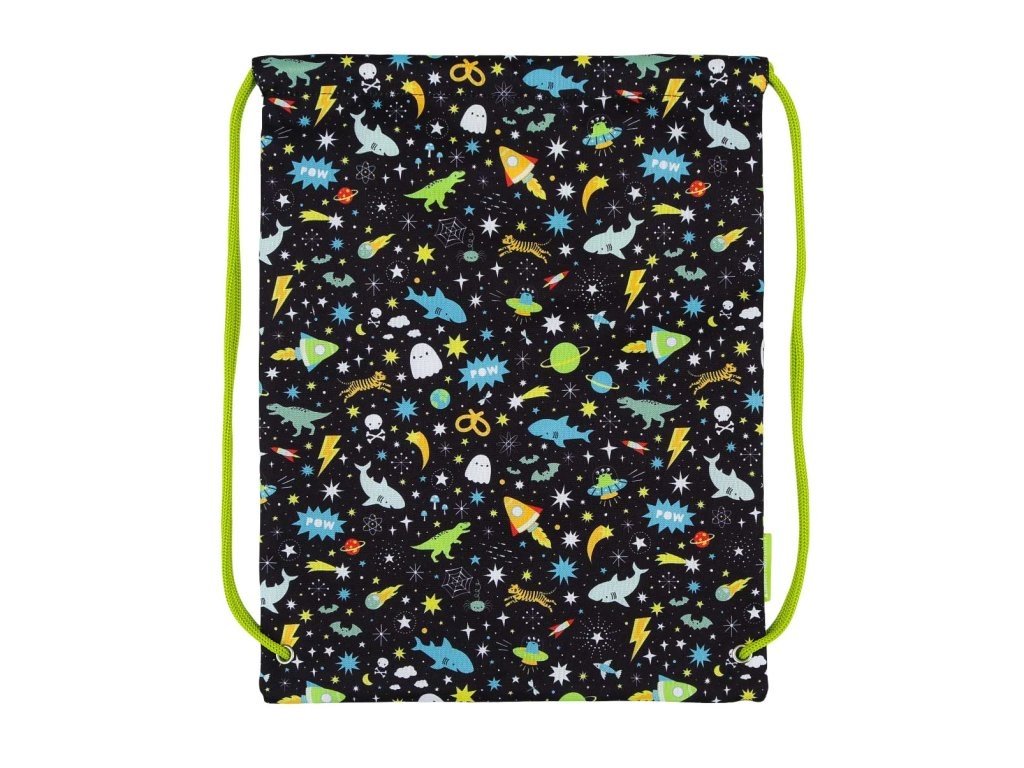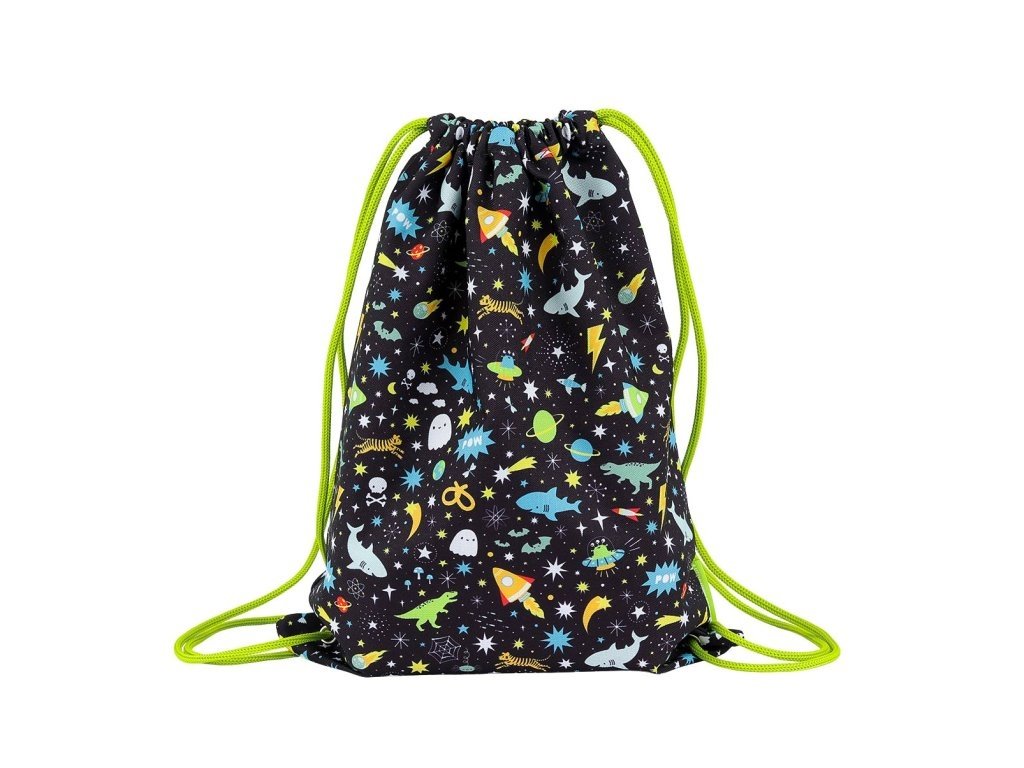 Pytel je lehký, snadno omyvatelný a prostorný, takže se do něj vejdou přezůvky, sportovní úbor nebo věci na plavání. Uzavírá se pomocí pevných stahovacích šňůrek, které zároveň slouží jako ramenní popruhy – dítě si pytlík pohodlně hodí na záda a může vyrazit.