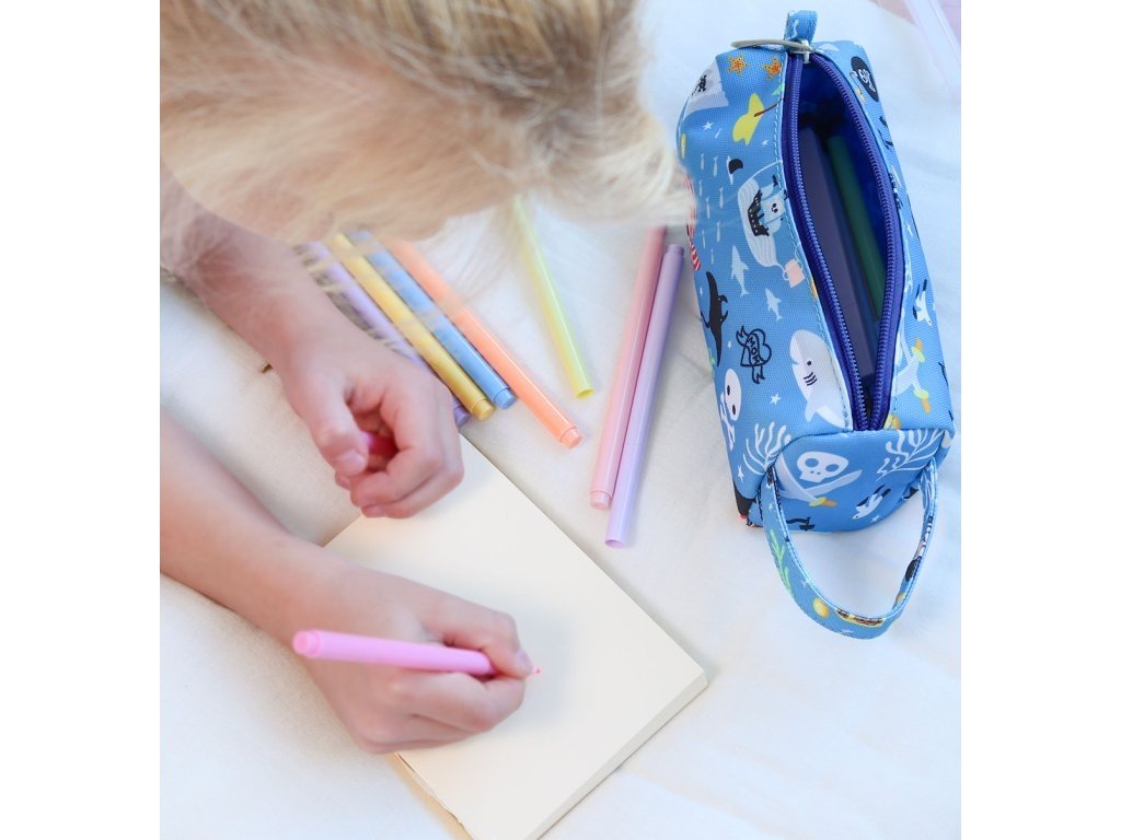 Připravte se na kreativní pirátskou výpravu! Pouzdro na pastelky A Little Lovely Company – motiv Piráti je skvělým společníkem pro malé kapitány, kteří rádi kreslí a tvoří. Do praktického pouzdra se vejdou pastelky, tužky i další školní drobnosti a díky zipu zůstanou všechny poklady v bezpečí.