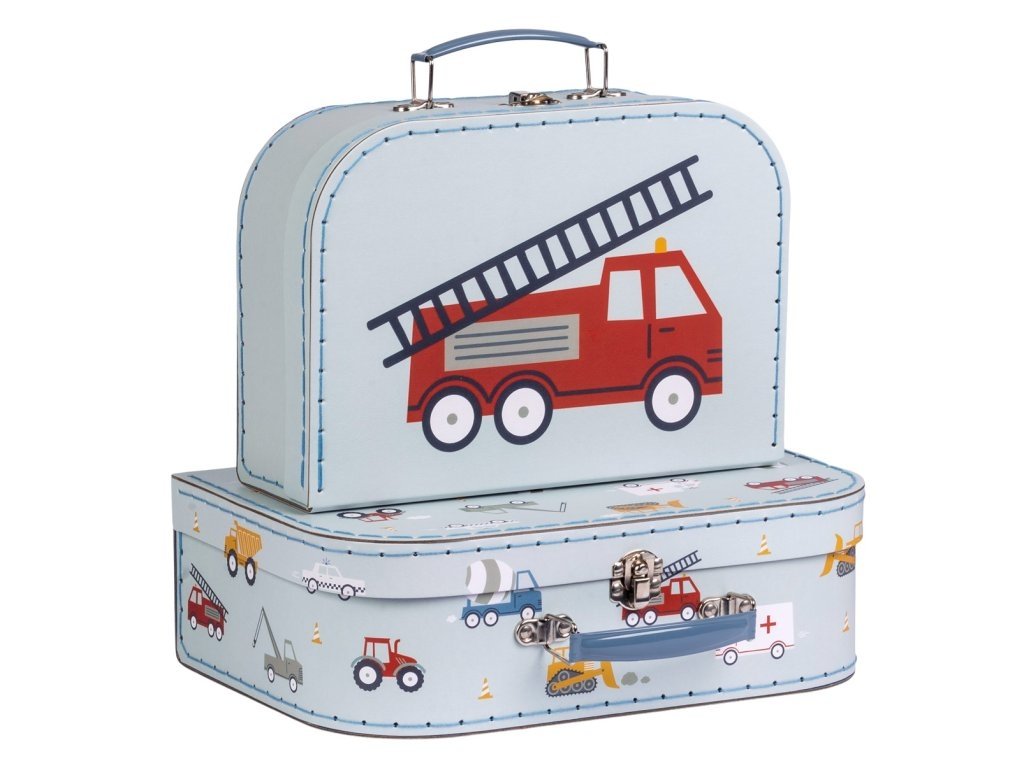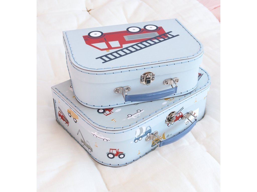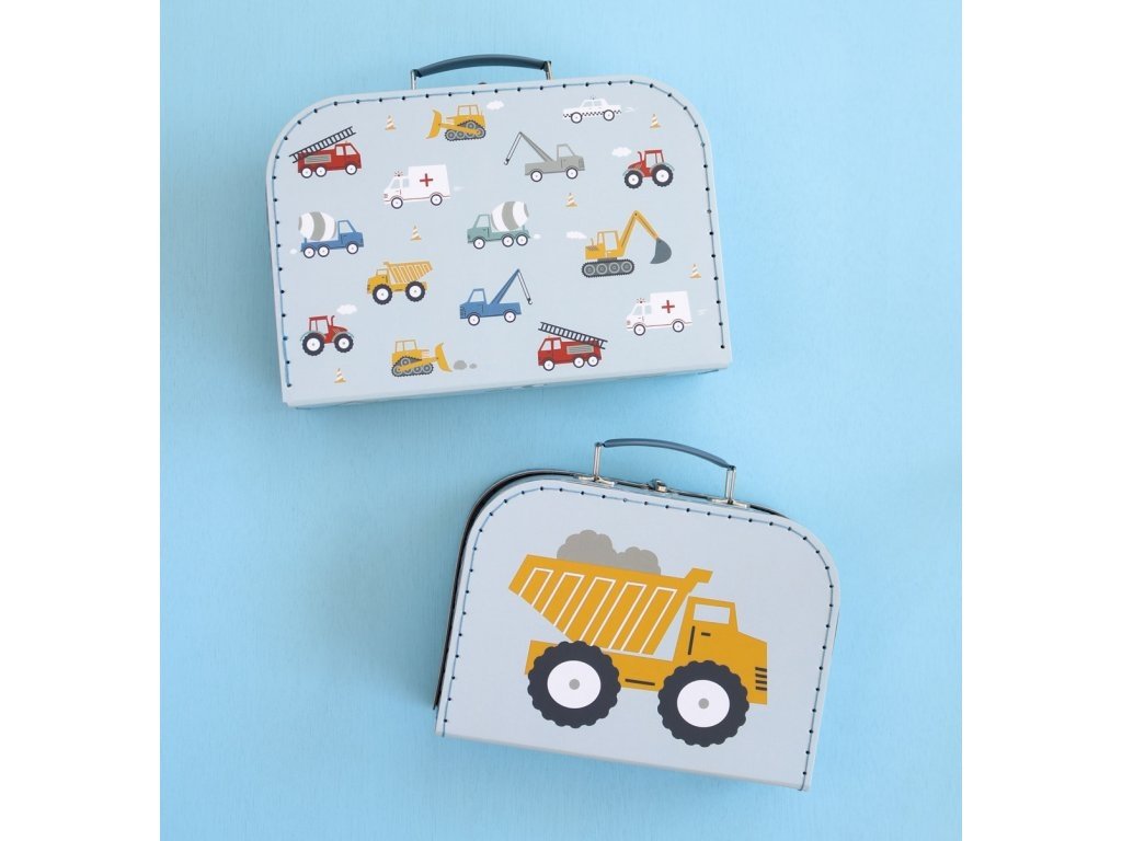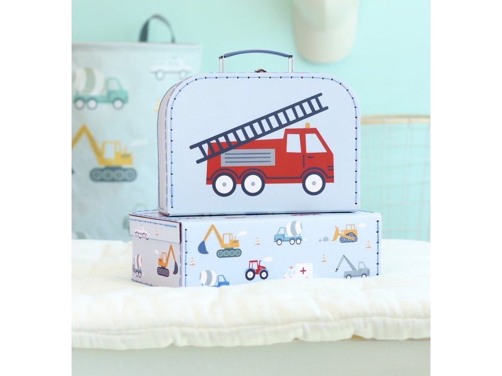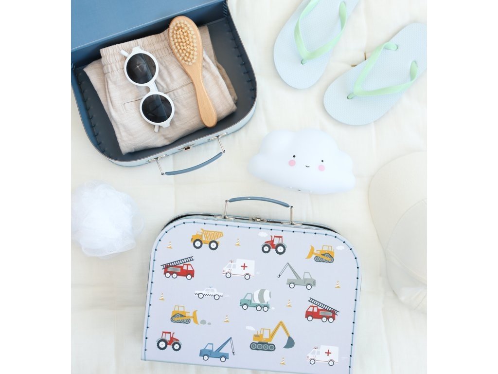 Uspořádejte dětské hračky, pastelky a drobnosti hravě a přehledně s sada dvou kartonových kufříků A Little Lovely Company – motiv vozidla. Kufříky jsou vyrobené z pevného kartonu, lehké a snadno přenosné, takže je děti mohou brát kamkoliv – do školy, školky nebo na výlety.