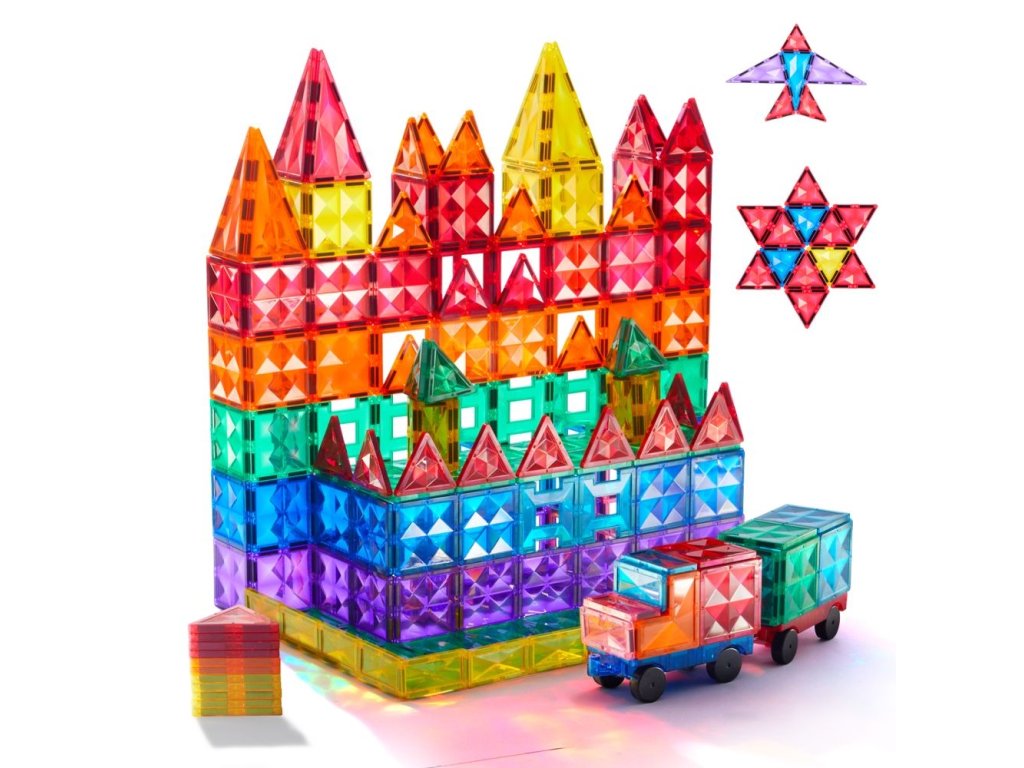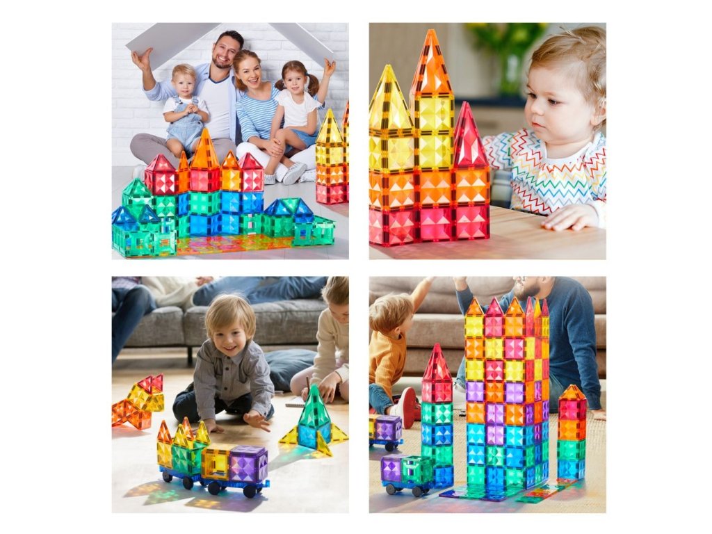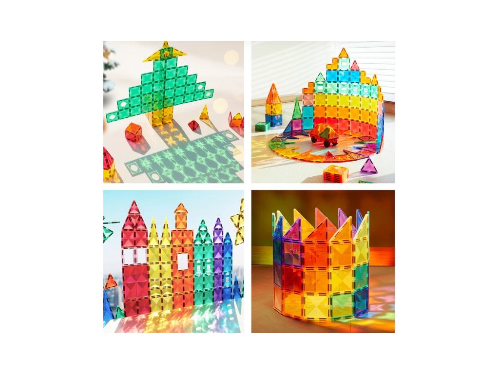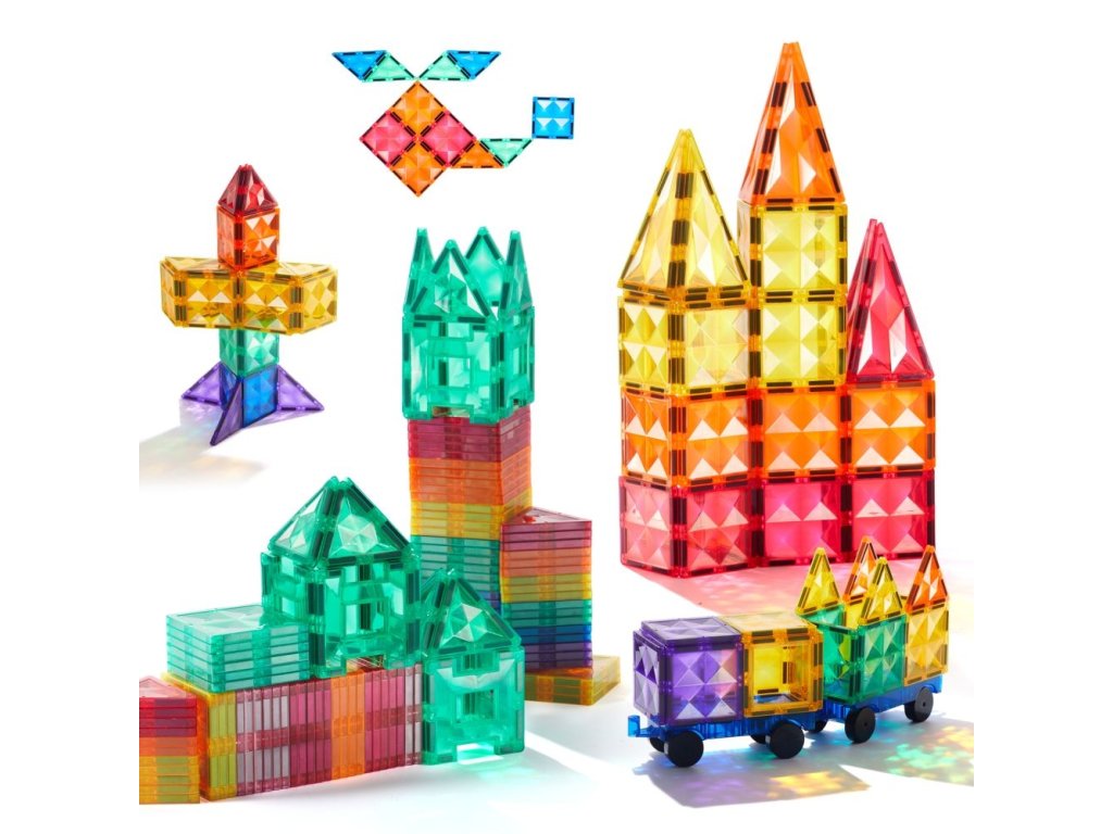 Barevná magnetická stavebnice (100 ks) nabízí dětem široké možnosti tvoření díky velkému počtu magnetických dílků v různých tvarech a barvách. Děti mohou stavět domy, věže, zvířata, vozidla i abstraktní konstrukce a pokaždé vytvářet nové herní scénáře.