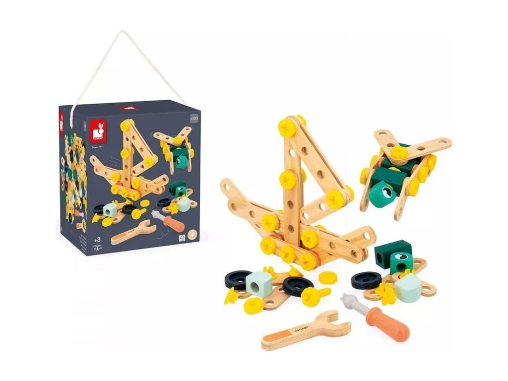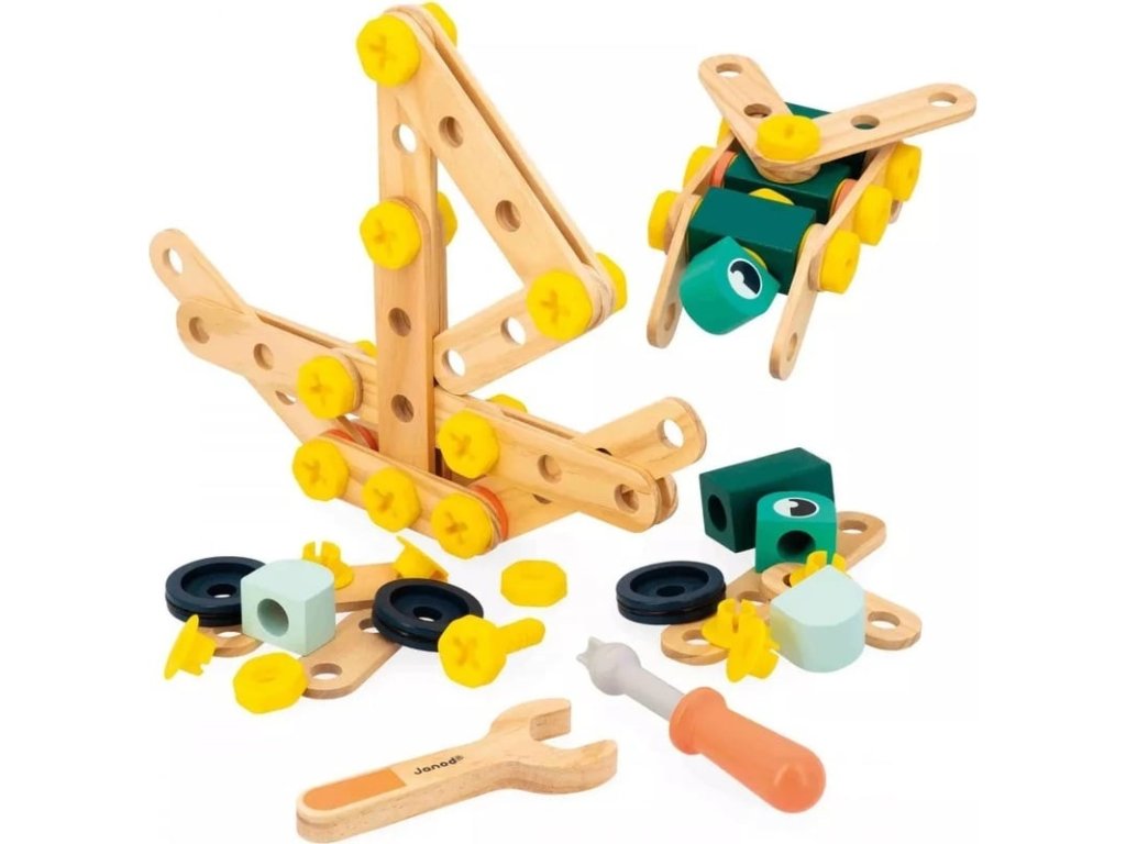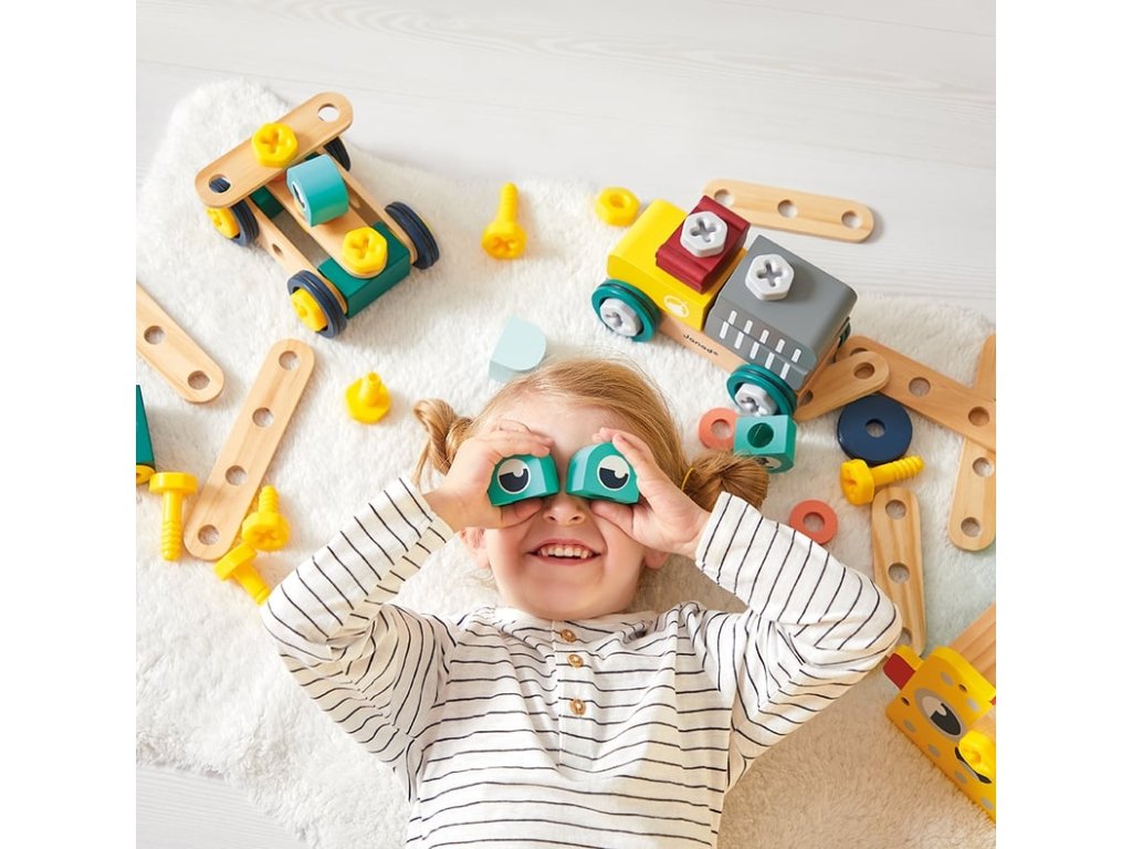 Objevte kouzlo konstrukce s BricoKids dřevěnou montážní stavebnicí 100 ks. Tato sada nabízí kombinaci dřevěných a plastových komponentů, šroubovák, klíč a 10 karet s modely, podle kterých mohou děti sestavovat stavební objekty. Díky tomu rozvíjí jemnou motoriku, kreativitu, plánování i logické myšlení.