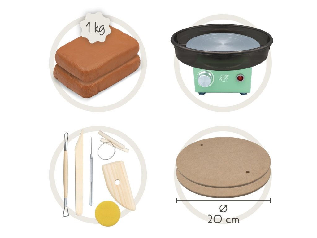Kruh se otáčí rychlostí až 220 otáček za minutu, umožňuje plynulou regulaci a přesné točení keramické hlíny. Kovová točna kruhu má průměr 20cm a lze ji použít k vytváření různých výtvorů všech velikostí. Součástí balení jsou dvě podložky, abyste mohli své výtvory nechat uschnout a uvolnit tak kruh pro nové výtvory.