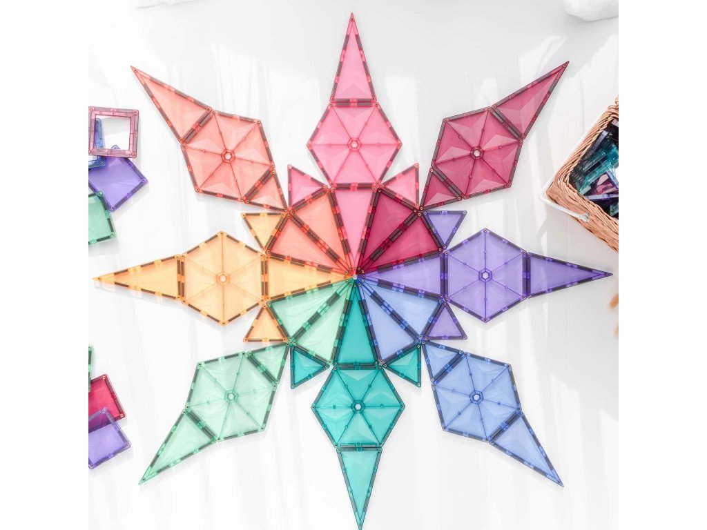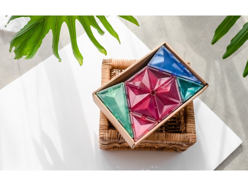 Tato 40dílná sada přináší jedinečné geometrické dílky v jemných pastelových barvách. Umožňuje dětem zkoumat symetrii, vzory i složitější konstrukce, a přitom podporuje kreativitu, prostorové vnímání i jemnou motoriku. Ideální doplněk k větším Connetix setům.