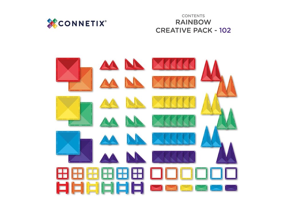 Objevte svět nekonečné kreativity s magnetickou stavebnicí Connetix Tiles - 102 ks! Tato sada obsahuje 102 dílků v pestrých duhových barvách, které děti zaujmou a podpoří jejich fantazii.