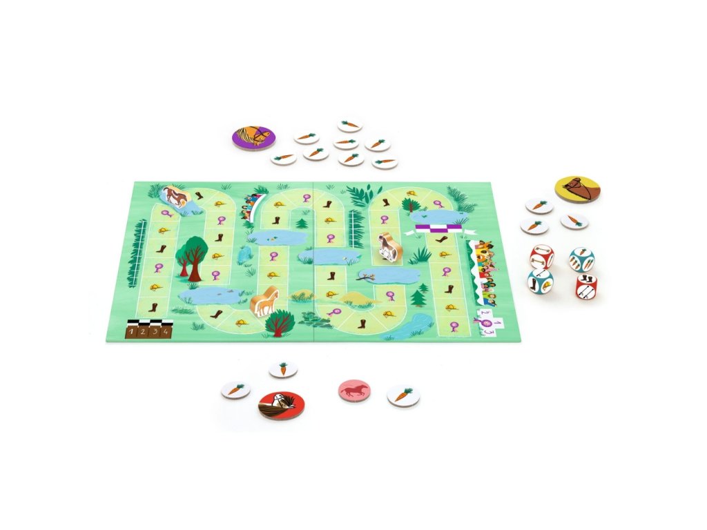 Každý hráč se snaží dovést svého koníka do cíle – ale vyhrát může jen ten, kdo správně vyváží rychlost a energii. Půjdete klusem a budete si šetřit síly, nebo risknete rychlý galop a pokusíte se ostatním ujet?