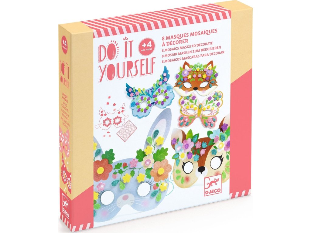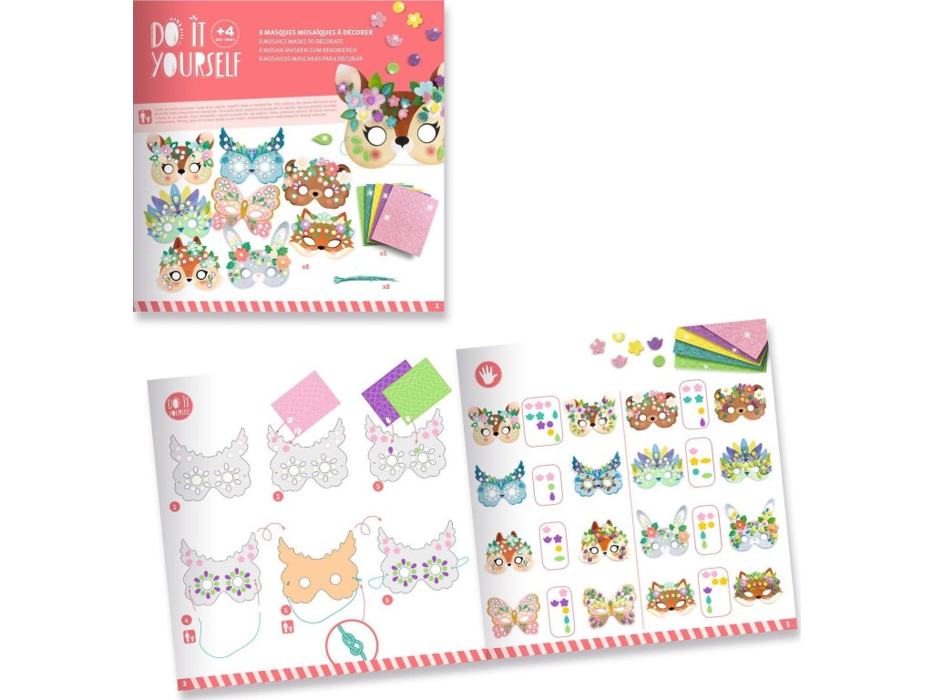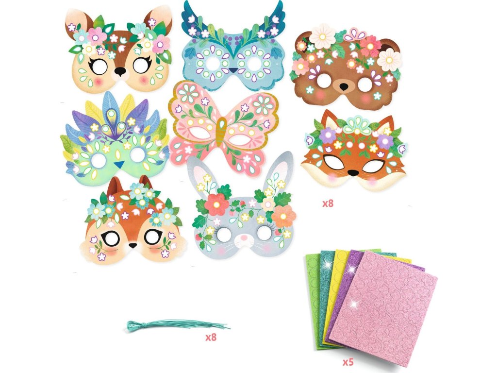 Kreativní sada s 8 maskami lesních zvířátek umožní dětem proměnit se v oblíbené hrdiny z lesa. Stačí vybrat masku a podle barevných předloh ji ozdobit třpytivými mozaikovými samolepkami. Výsledkem jsou zářivé masky připravené na karneval, oslavu i společnou hru.