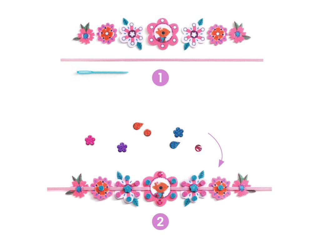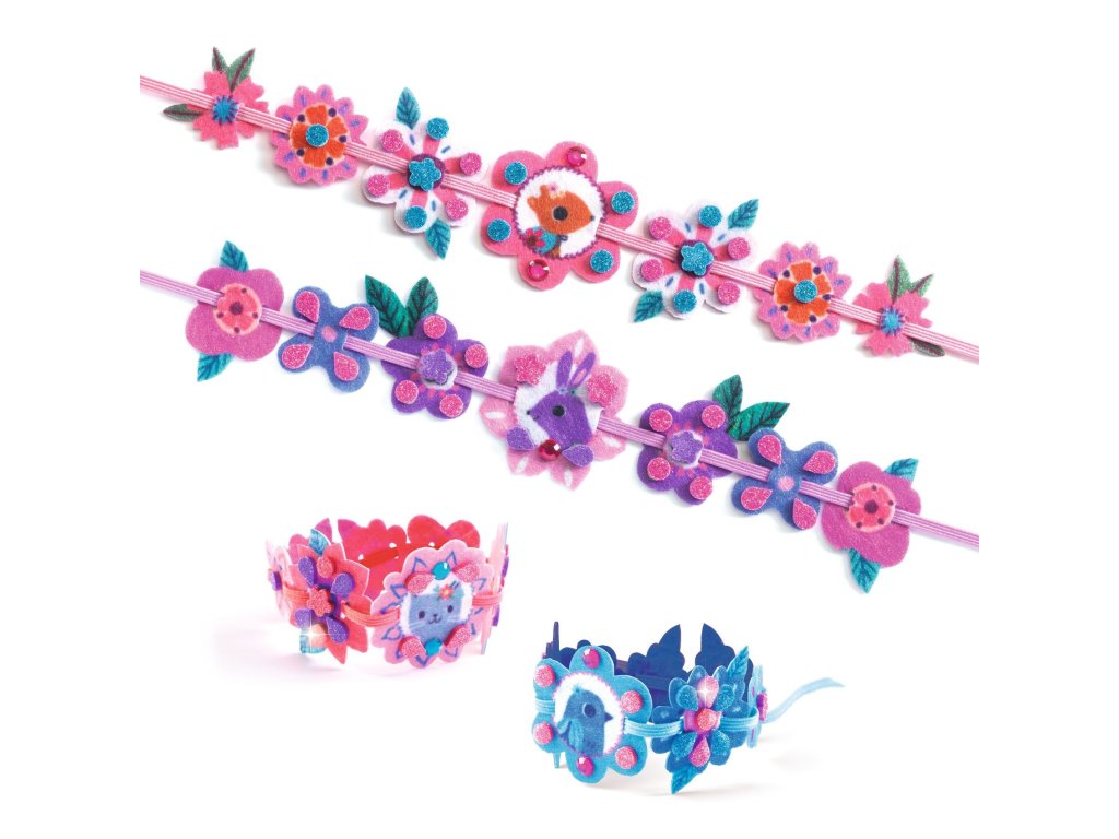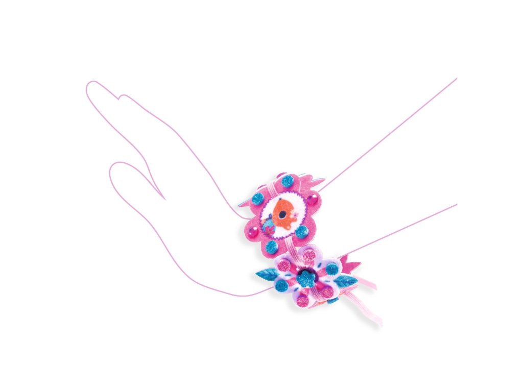 S touto kreativní sadou si malé parádnice vytvoří originální doplňky. V balení najdete čtyři roztomilé náramky k sestavení a dozdobení třpytivými samolepkami a kamínky. Díky měkkým plstěným dílkům a pružným gumičkám si děti snadno vytvoří krásné, osobité doplňky, které skvěle padnou na zápěstí. Sada obsahuje podrobný obrázkový návod krok za krokem, takže tvorba je jednoduchá a zábavná. Ideální dárek pro děti od 5 let, které rády tvoří vlastní styl a milují módní doplňky.