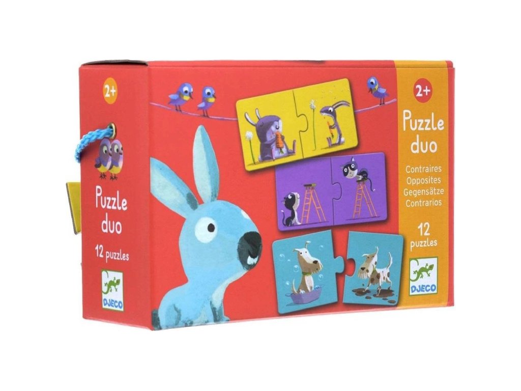 Veselé duo puzzle, s kterými děti budou rozeznávat protiklady. Puzzle jsou vyrobeny z tvrdého kartonu.