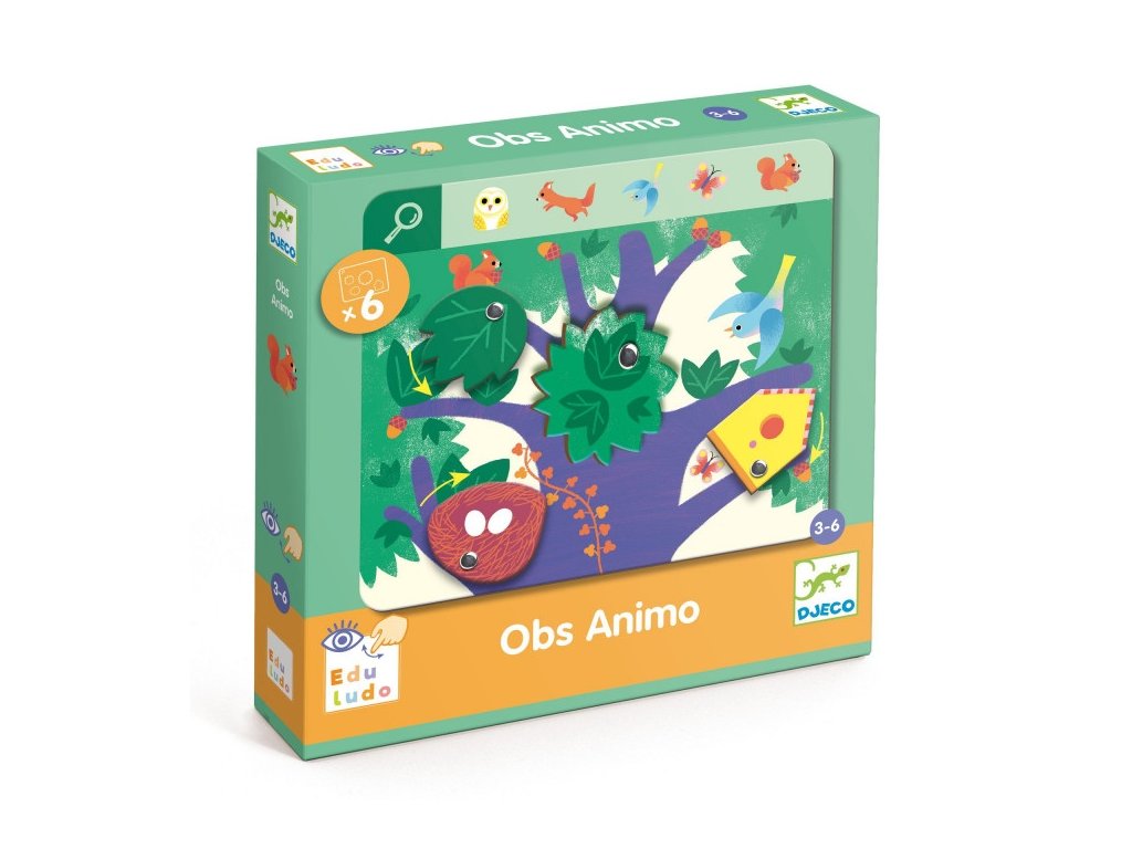 Interaktivní hra typu „hledej a najdi“ s pohyblivými částmi pro děti od 3 do 6 let je originální, zábavná a plná akce! Je to jako skutečná hra na schovávanou. Cílem hry (originální název hry je Obs Animo) je nalézt na velkém obrázku prvky, které jsou zobrazeny v horní části.