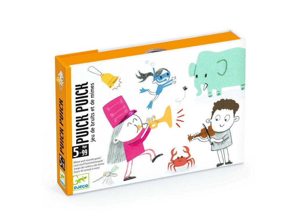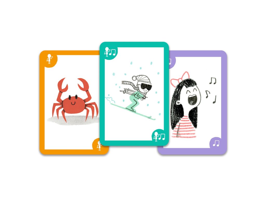 Karetní hra plná smíchu pro 2-4 hráče od 5 do 99 let. Úkolem hráčů je pomocí zvuků nebo pantomimy napovědět, co je znázorněno na kartě – bez mluvení nebo čtení! Zábava pro malé i velké, kde se fantazii meze nekladou. Ideální hra i pro předškoláky, není potřeba umět číst. Cílem je být prvním hráčem, který získá 10 karet.