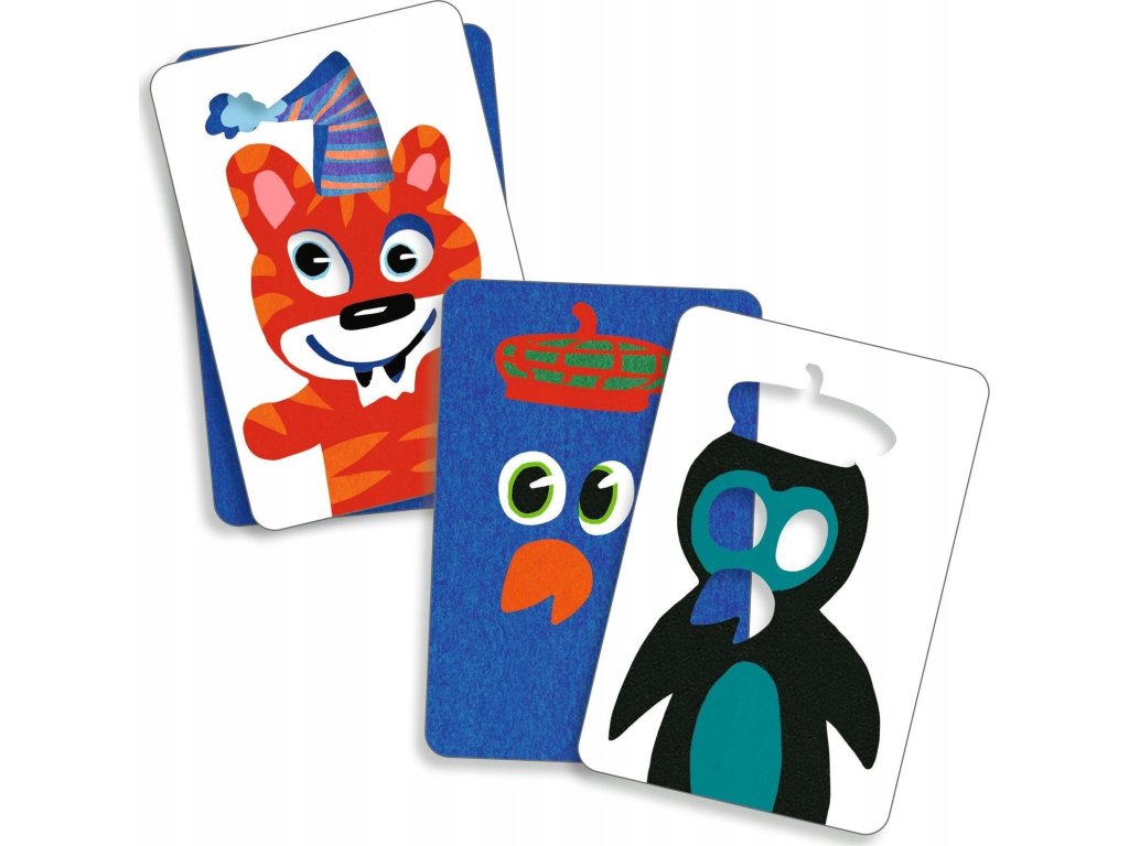 DJECO Magický zápas (Magic Match) je zábavná karetní hra zaměřená na postřeh a rychlost, ideální pro děti ve věku 4 až 12 let. Hráči se snaží co nejrychleji najít správné oči, ústa a doplňky, které patří k postavám na děrovaných kartách. Správným vrstvením karet vznikají roztomilé zvířecí postavičky, což podporuje vizuální vnímání a koncentraci.