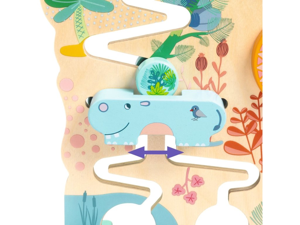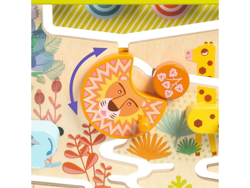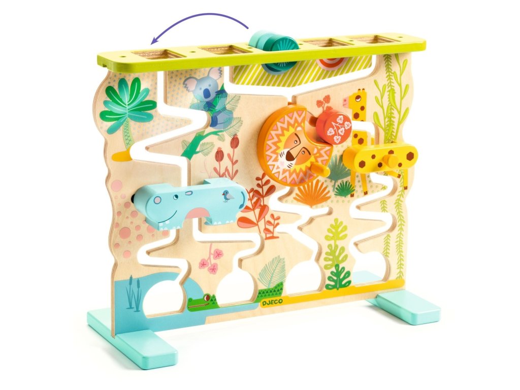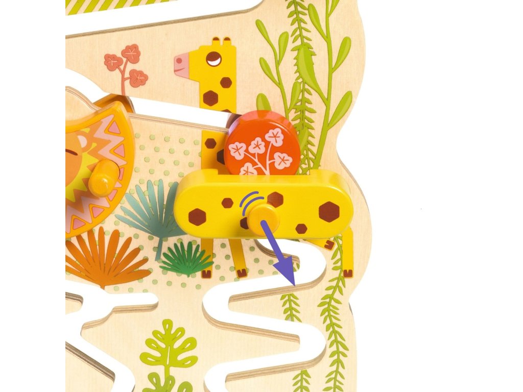 DJECO Labyrint Cascadou je krásná dřevěná motorická hračka s kuličkami a labyrintem na téma džungle, která nadchne každé malé dítě. Hračka je určená pro děti od 18 měsíců a pomáhá rozvíjet jemnou motoriku, koordinaci rukou a očí a trpělivost.
