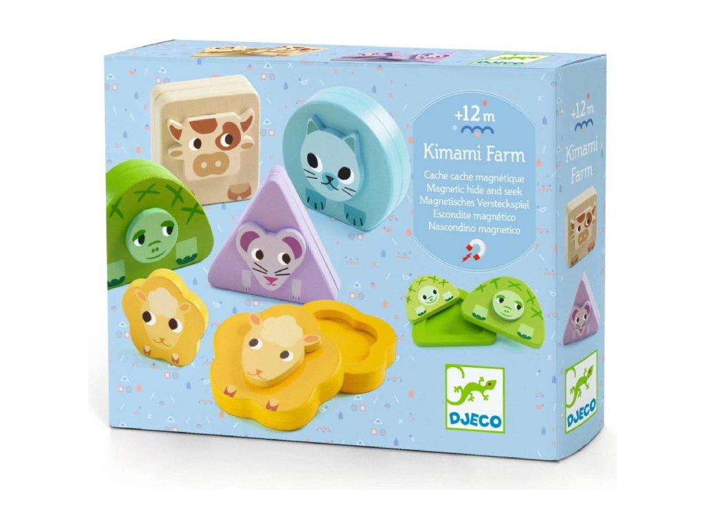 Magnetická hra na schovávanou. Pět hospodářských zvířat, která se otevírají a odhalují miminko.