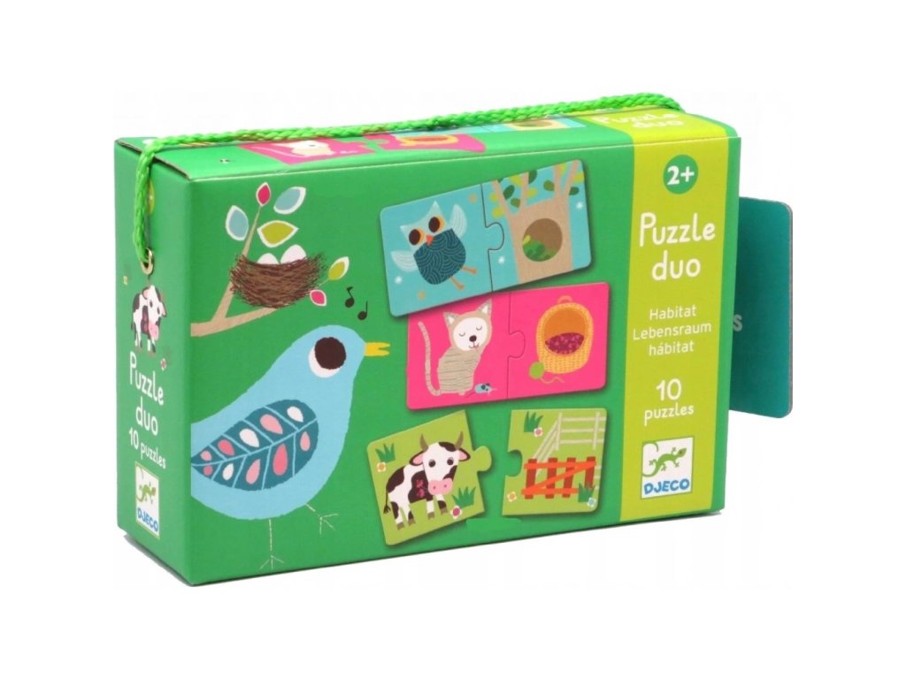 Krabička obsahuje 20 dílků s krásnými ilustracemi zvířátek a jejich domečků. Spojte správně zvířátko s jeho domovem. Pro děti od 2 let.