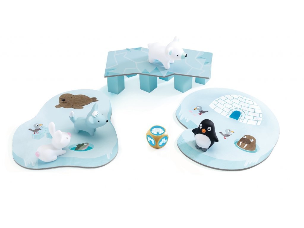 Skvělá hra pro děti od 2,5 let, která rozvíjí jemnou motoriku a učí děti spolupráci a týmové hře. Set obsahuje čtyři zvířátka - tučňáka, polárního medvěda, bílou lišku a bílého zajíčka. Zvířátka se snaží dostat do svého iglú, ale led se může kdykoli propadnout. Tato hra vyžaduje spolupráci všech hráčů, aby mohli vyhrát jako tým.