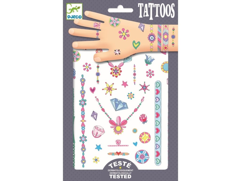 V balení jsou dva archy s obrázky šperků. Tetování je dermatologicky testované a lehce odstranitelné. Vhodné pro dívky od 4 let. Tetování má nepřehlédnutelné neonové barvy.
