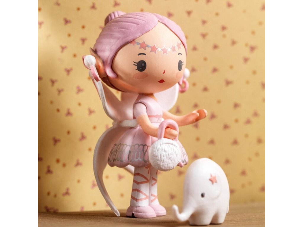Djeco Tinyly Elfe & Bolero přináší dětem do rukou jemně ilustrovanou vílu Elfe s špičatýma ušima a bílými křídly a jejího věrného společníka Bolera – malého růžového slona. Tento poetický set z kolekce Tinyly je navržen tak, aby rozvíjel dětskou fantazii prostřednictvím interaktivního hraní a příběhového světa.