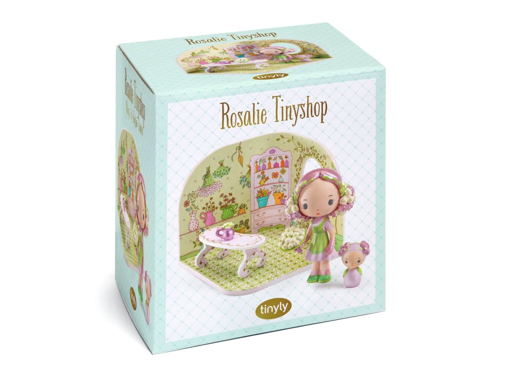 Vítejte ve světě Tinyly – kouzelné kolekci postaviček a jejich příběhů od značky Djeco. Rosalie Tinyshop je roztomilý přenosný obchůdek, který kombinuje figurku Rosalie, jejího zvířecího kamaráda Poe a malý krámek plný květin. Designově promyšlený domeček je ilustrovaný do posledního detailu a snadno přenosný díky praktickému uchu.