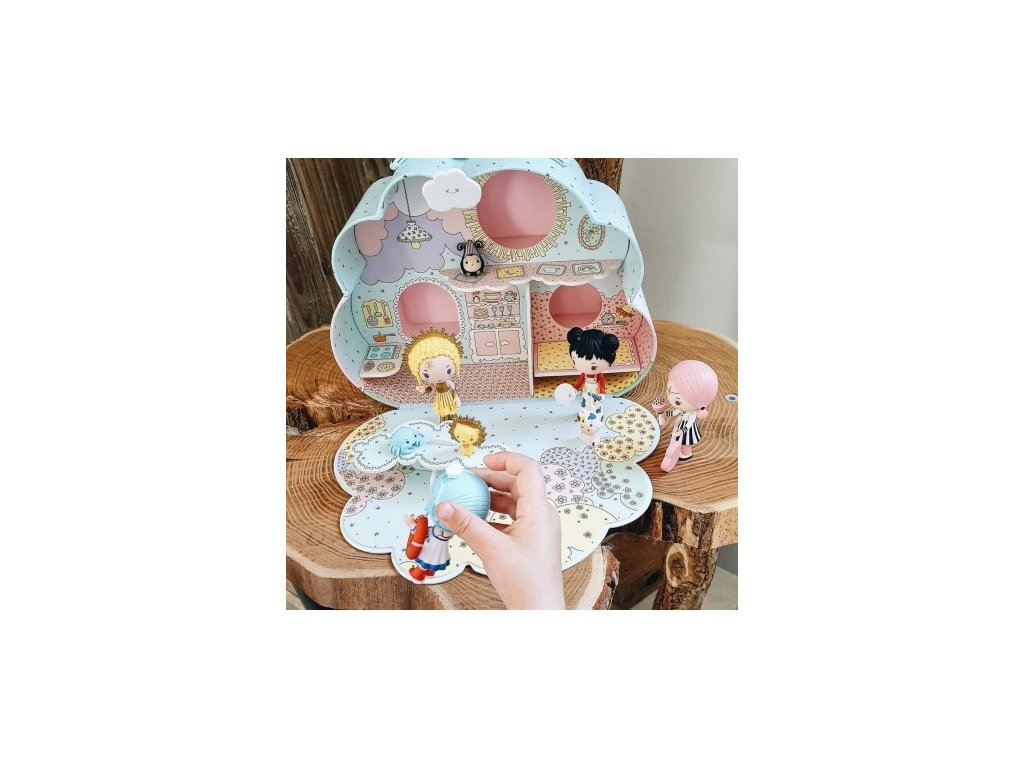 Objevte něžný svět Tinyly s herním setem Sunny & Mia House od značky Djeco. Tento originální domeček ve tvaru obláčku je vybaven madlem pro snadné přenášení a otevírá se jako kufřík. Uvnitř najdete detailně zpracovaný interiér s ložnicí, kuchyňkou i jídelním koutem, který láká k hraní. Součástí sady jsou dvě postavičky – Sunny a její věrná kamarádka Mia.