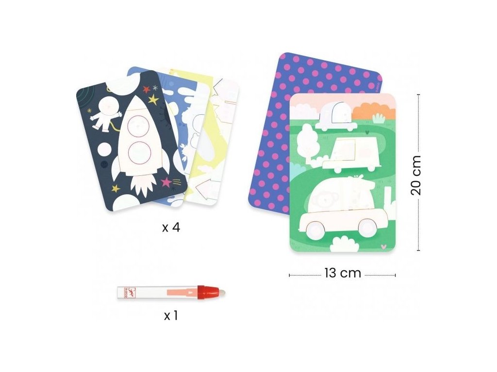 Pomocí tužky naplněné vodou vybarvěte bílé části, abyste odhalili, co se skrývá pod nimi. Je to kouzlo: objevují se vzory a mění barvu! Jakmile jsou desky suché, můžete začít znovu!