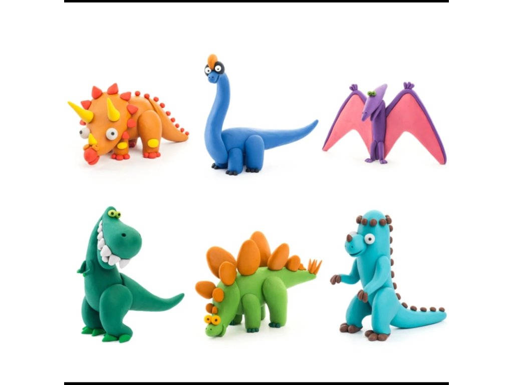 Kreativní sada modelíny samoschnoucího typu inspirovaná světem dinosaurů. Obsahuje 15 kelímků barevné modelíny, nástroje a interaktivní návody, díky nimž děti od 3 let vytvoří své vlastní dinosauří figurky. Po zaschnutí se výtvory stávají pevnými dekoracemi nebo hračkami na hraní.