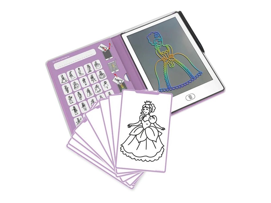 Tablet umožňuje kreslení a psaní pomocí stylusu bez nutnosti papíru, pastelek nebo fixů. Jedním stiskem tlačítka lze kresbu snadno vymazat a začít znovu. Motiv princezen podporuje fantazii a kreativní vyprávění příběhů, což z něj dělá oblíbenou hračku zejména pro malé milovníky pohádek.