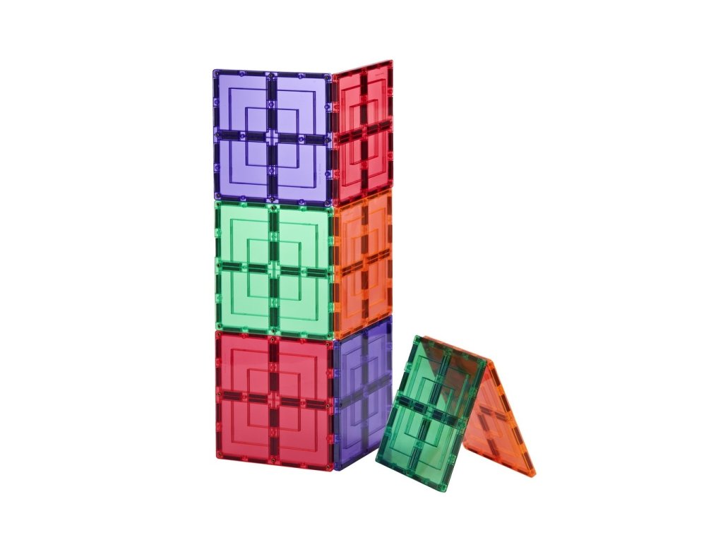 Rozšiřující sada osmi velkých čtvercových magnetických dílků pro magnetické stavebnice. Každý čtverec má magnety umístěné i uprostřed, díky čemuž působí jako čtyři pevně spojené díly. To umožňuje přikládat další kostky i doprostřed plochy, stavět pevnější, stabilnější a konstrukčně složitější stavby a zároveň je snadněji přenášet bez rozpadnutí. Ideální doplněk pro tvorbu základů, stěn a velkých konstrukcí.
