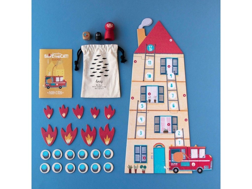 Hra je spíše týmová práce než soutěž, hráči se musí spojit jako hasiči, aby zachránili hořící budovu – protože na střeše je uvězněno kotě! Tato inovativní hra pro 2 - 6 hráčů vyvolá debatu a týmovou strategii a zároveň dává dětem šanci naučit se a procvičit číselné hodnoty.
