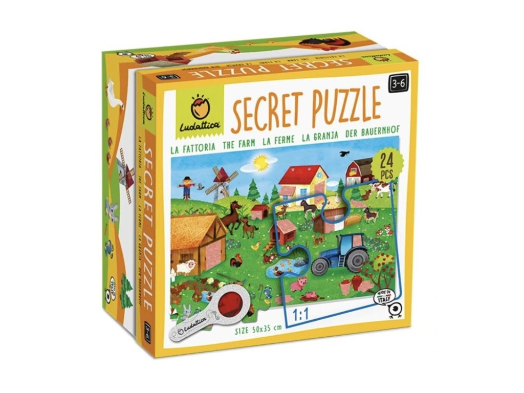 Ponořte se do světa dobrodružství a objevování s Ludattica Secret Puzzle – Farma. S touto sadou skládání získáte nejen krásný obrázek venkovské farmy, ale také tajné detaily, které lze odhalit pomocí přiložené lupy-dekodéru.