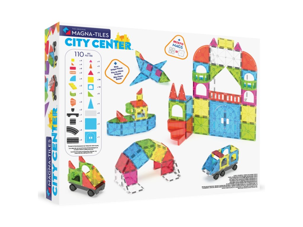 Vítej v pulzujícím centru fantazie! Se sadou MAGNA-TILES® City Center si děti postaví své vlastní město – od ulic a domů až po balkony, schody a auta. Kreativní hra se mění ve skutečné urbanistické dobrodružství, kde jsou všechna pravidla jen na vaší straně.