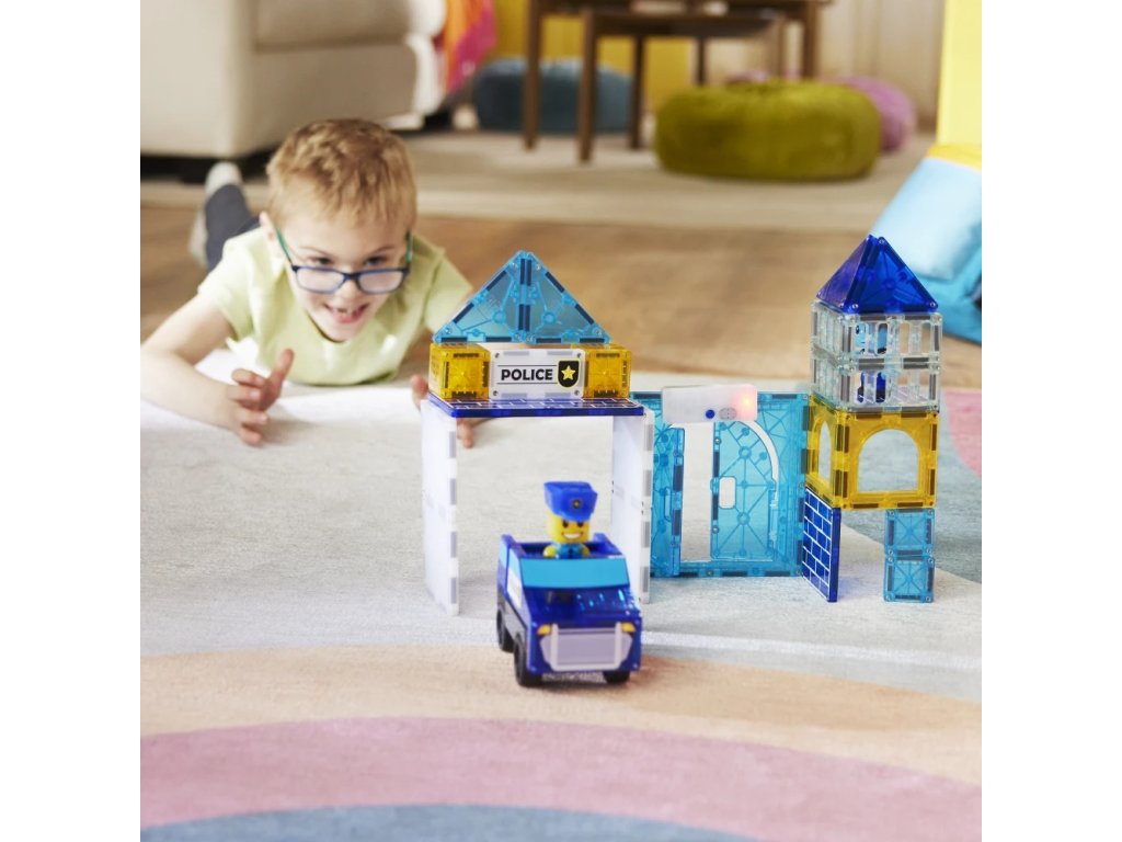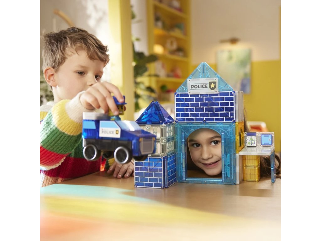 Vstupte do světa akce, kde blikají světla, houkají sirény a malí hrdinové mají hlavní roli! Se stavebnicí Magna-Tiles® Police Station se každé dítě stává šéfem policie, designérem stanice i záchranářem v jednom. Stačí pár dílků a zábava plná fantazie může začít.
