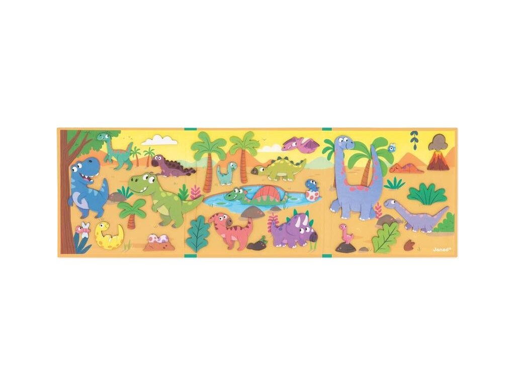 Oživte pravěký svět v dětském pokoji s magnetickou knihou Magnetistories Dinosauři. Tato kreativní hra podporuje fantazii, jemnou motoriku i příběhové vyjadřování. Děti mohou pomocí 30 magnetických dílků se zvířecími motivy skládat scény na magnetickém pozadí nebo vymýšlet vlastní příběhy.