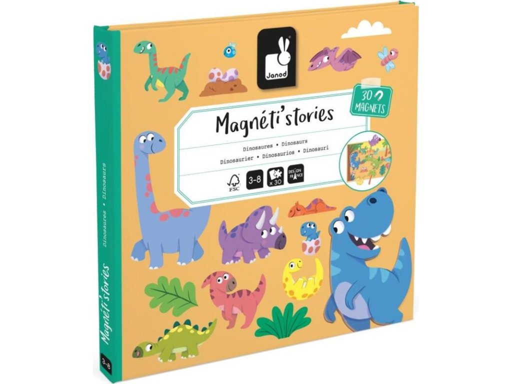 Magnetická kniha Magnetistories Dinosauři nabízí jedinečnou možnost přenést pravěké tvory do dětských her. S 30 magnetickými dílky a robustním magnetickým pozadím mohou děti skládat předlohy nebo vytvářet vlastní scény – od T-rexů po plesiosaury. Hračka je zpracována z kartonu a magnetických prvků, což zaručuje lehké a bezpečné provedení. Formát knihy zajišťuje, že po zavření zůstávají všechny dílky uvnitř, což usnadňuje ukládání i přenášení.