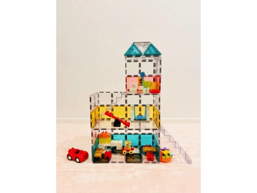 Díky kompatibilní konstrukci lze schody kombinovat s různými magnetickými stavebnicemi a doplňky.