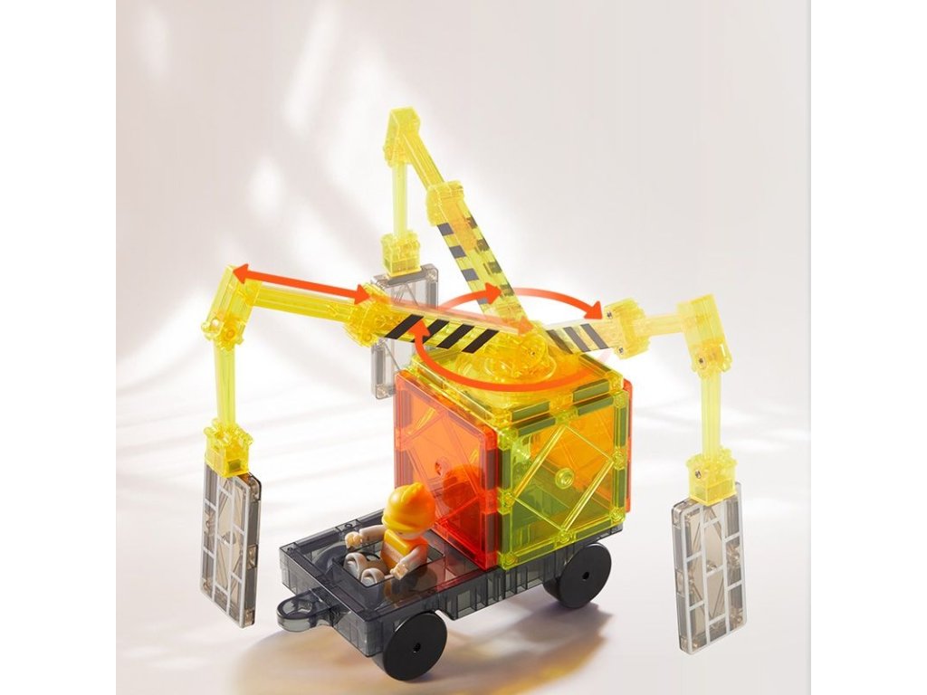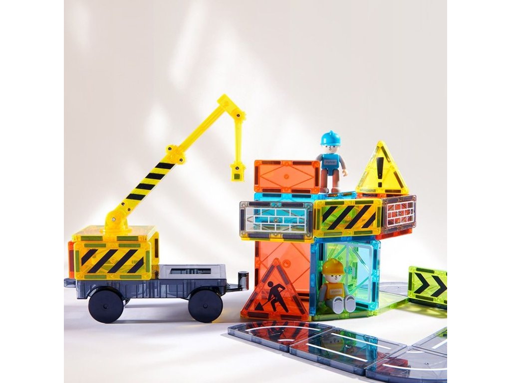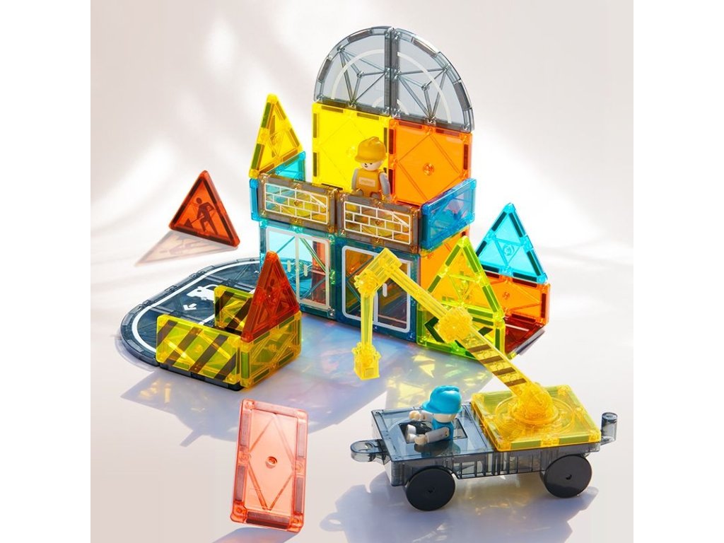 Motiv stavitelů, vozidel a stavebních prvků děti přirozeně vtahuje do hry a podporuje fantazii, kreativní myšlení a prostorovou představivost. Magnetické spojení umožňuje rychlé spojování a rozpojování dílků, což pomáhá rozvíjet jemnou motoriku, koordinaci ruka–oko a logické uvažování.