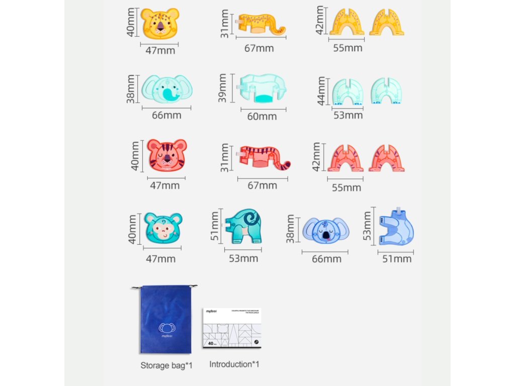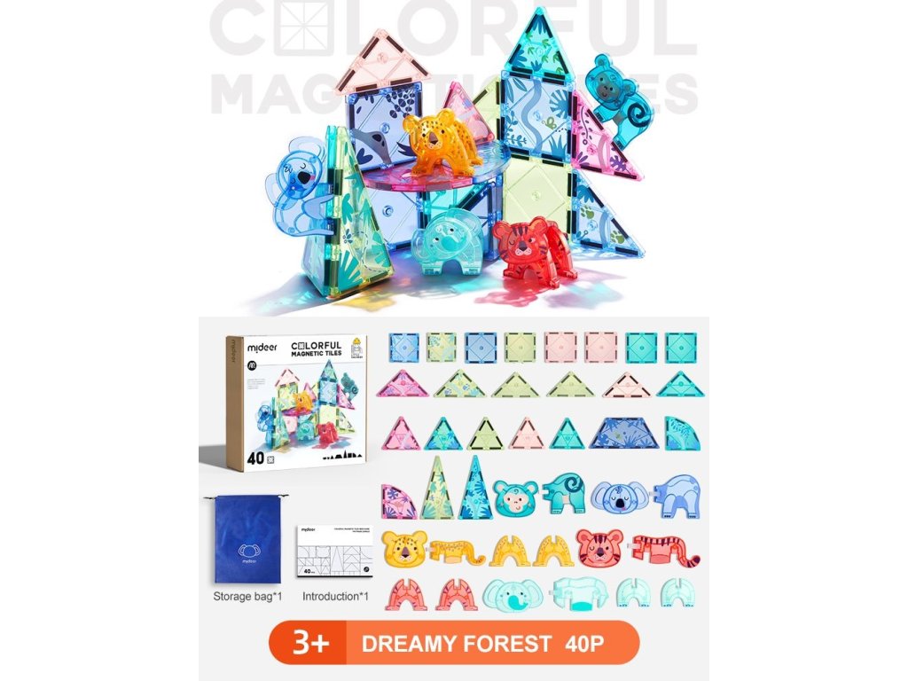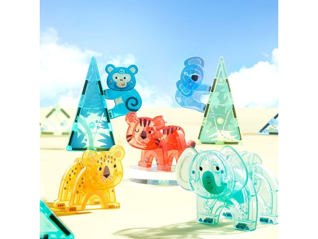 Motiv roztomilých zvířátek děti přirozeně motivuje ke hře a podporuje fantazii, tvořivost a vyprávění vlastních příběhů. Magnetické spojení umožňuje rychlé skládání a rozebírání, což pomáhá rozvíjet jemnou motoriku, koordinaci ruka–oko a prostorové myšlení. Děti mohou stavět jednoduché stavby, kombinovat zvířátka i vytvářet první 2D a 3D konstrukce.