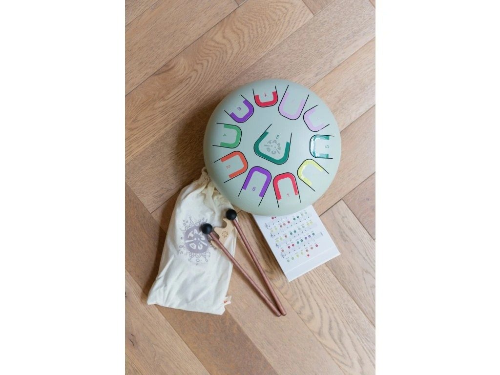 Objevte kouzlo melodie s Tambú+ 10 velké – zelinkavé od španělské značky Juegaconmigo, navrženým pro snadný a přirozený vstup do světa hudby. Tento tongue drum o průměru 10″ (~ 25 cm) disponuje 11 tóny v diatonické durové stupnici laděné na F (Fa).