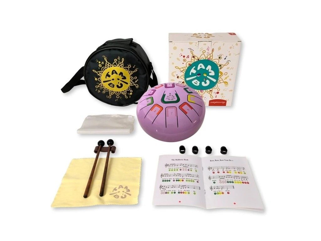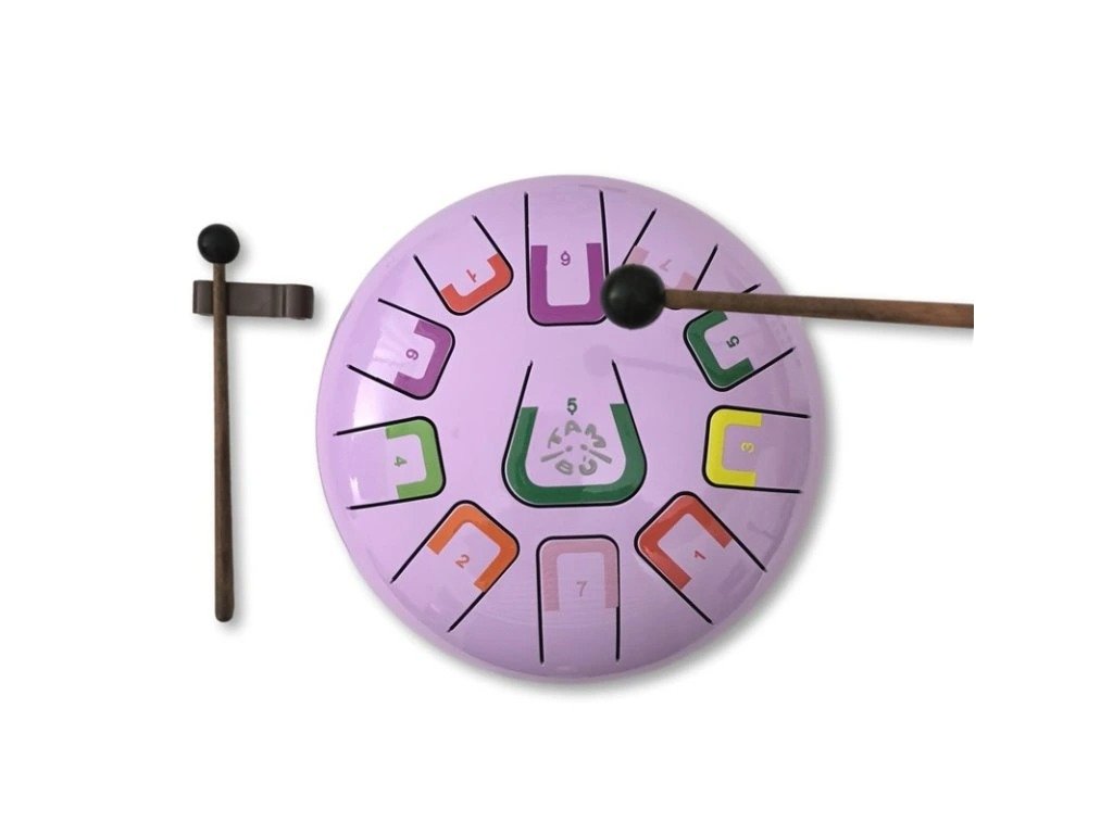 Představujeme Tambú fialové — elegantní a univerzální steel tongue drum laděný do G dur, ideální pro začátečníky, děti i dospělé. Tento melodický bubínek disponuje 11 barevně i číselně označenými poli, která umožňují intuitivní hru bez potřeby znalosti klasického notového zápisu.