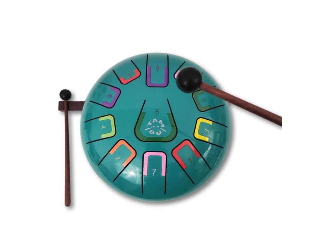 Seznamte se s Tambú modrým — elegantním steel tongue drumem laděným v G dur, s barevným a číselným značením not, který je přívětivý i pro ty, kdo nikdy nehráli. Tento nástroj o průměru 20 cm nabízí harmonické tóny a jemný, sametový zvuk perfektní pro relaxaci, improvizaci nebo výuku hudby.